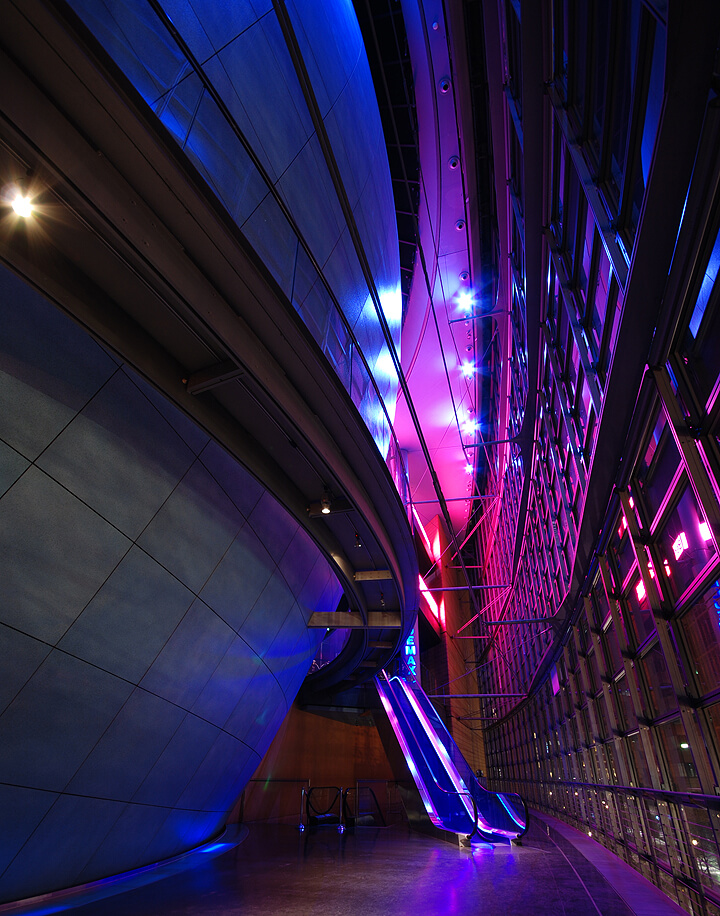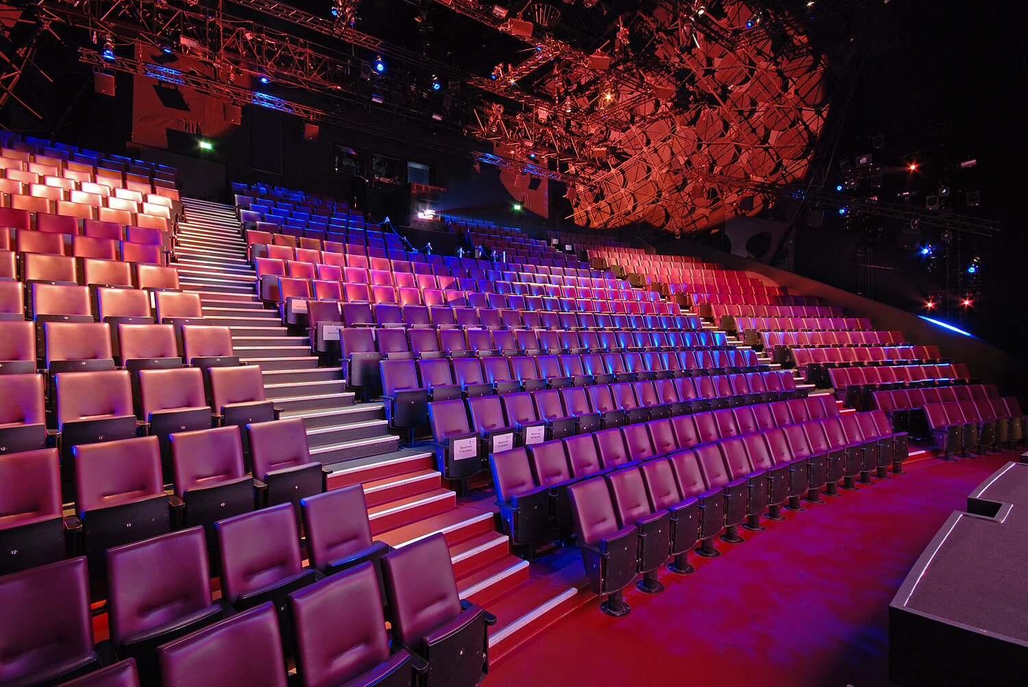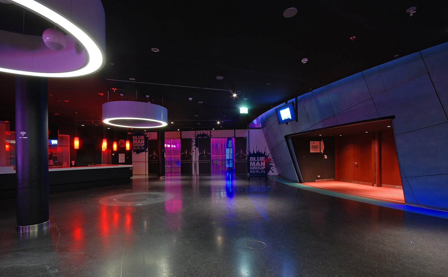 Im oberen Foyer sind im Boden aus glattpoliertem, schwarzem Steinfußboden kleine Lampen integriert, die den Eindruck erwecken, als wenn man über einen Sternenhimmel läuft. Vor dem Einlass wartete man stehend in diesem Vorraum. Der Barbereich eine Etage höher schien leider den anwesenden Filmteams vorbehalten zu sein.