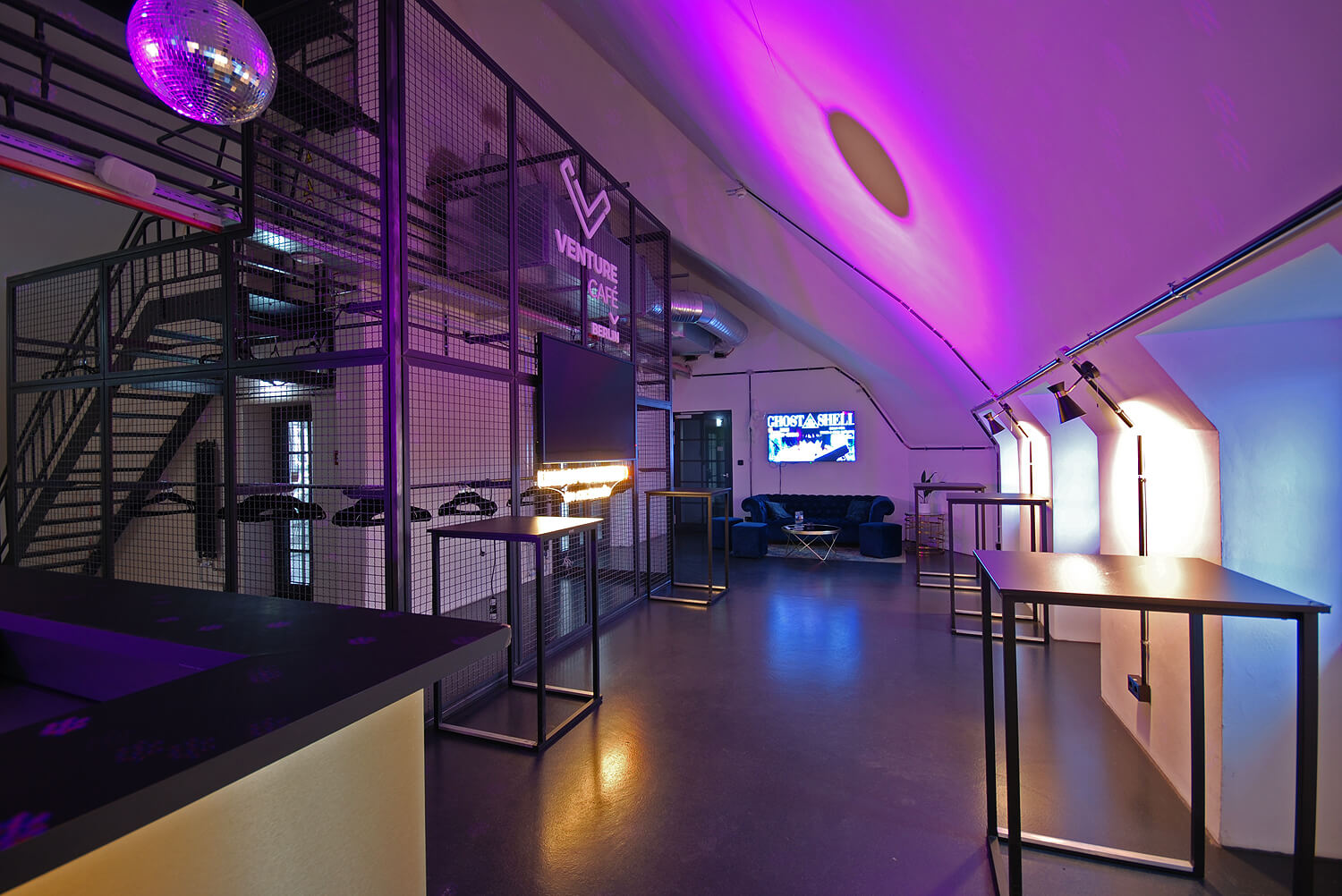 In einem kleinen Vorraum gibt es einen Tresen an dem Snacks und Getränke erwerben kann und ein Sofa und ein paar Stehtische. Der Blick aus den Fenstern über ganz Berlin ist hier fantastisch.